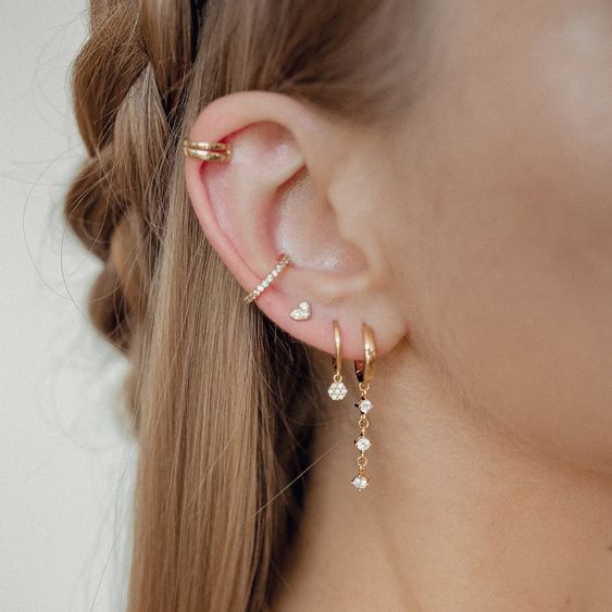 With a variety of piercings available—lobes, helix, tragus, conch, and more—individuals can mix and match different styles, creating a unique look tailored to their personality. Whether opting for delicate studs, bold hoops, or intricate chandeliers, the possibilities for customization are endless.
