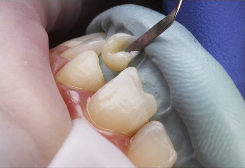 Preparation: The dentist will clean and lightly roughen the tooth surface to improve adhesion.