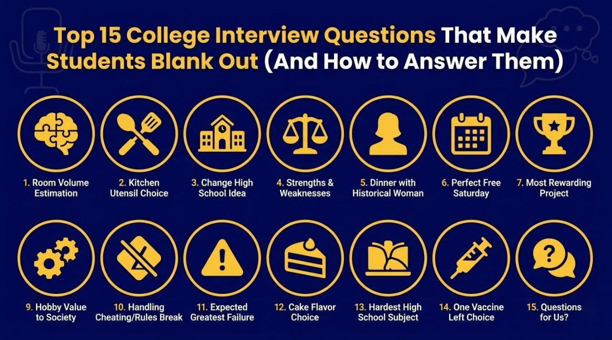 Admissions interviews can throw curveball questions as well as typical ones. Below are 15 tricky college interview questions that often make students freeze, along with how to answer them.